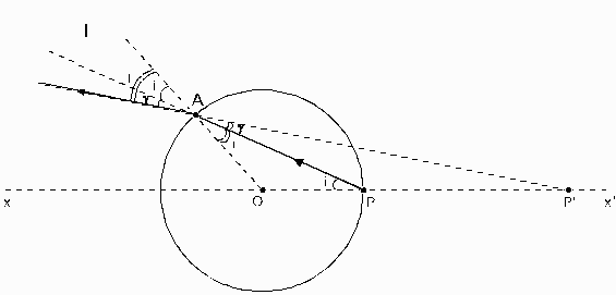 Portanto, o prolongamento do raio refratado (vide figura) interceptará o eixo XX' à direita de P , no ponto P', onde se situará a imagem virtual.