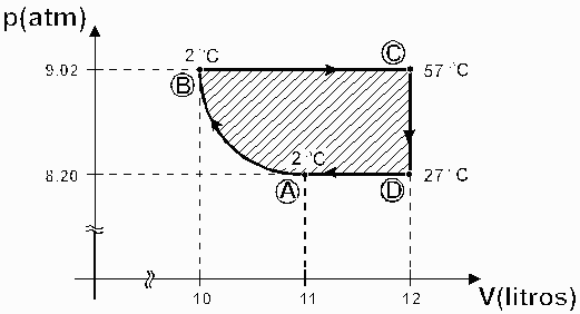 b) Calcule o trabalho, em joules, realizado pelo gás no ciclo.