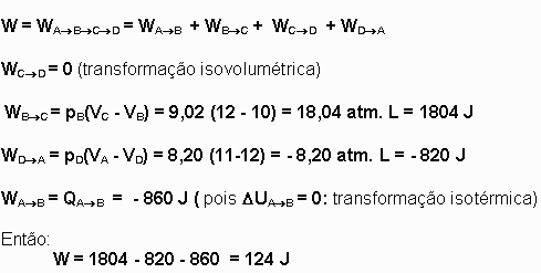 c) (U = Q - W = 0 no ciclo ( Q = W = 124 J