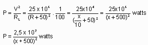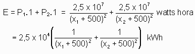 a) Uma expressão relacionando a potência P dissipada por cada lâmpada com a posi- ção x.