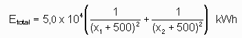 c) A expressão, em kwh, da energia dissipada pelas duas lâmpadas em um período de duas horas no qual as modificações da posição x, em metros, em função do tempo t, em horas, são as indicadas no gráfico: