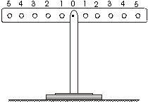 Uma barra homogênea possui orifícios, igualmente espaçados, ao longo de seu comprimento. A barra é suspensa