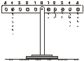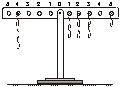 Dez ganchos idênticos são pendurados nos orifícios de várias