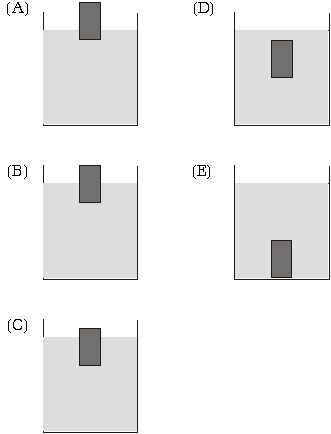 Se este bloco for inserido num recipiente com água (massa específica = 1,0 g/cm3), sua situação de equilíbrio será mais bem representada pela figura: