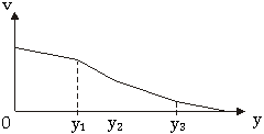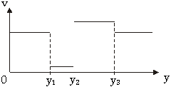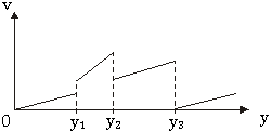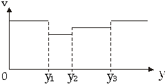 Nessa situação, o comportamento da velocidade da luz (v), ao atravessar esses meios, em função da espessura (y) está mais bem representado pelo gráfico: