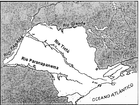 a) Relacionando a leitura do Poema I à observação do mapa, especifique o uso social atribuído ao Rio Tietê e explique porque o perfil de seu curso assumiu, nessa época, especial papel estratégico.
